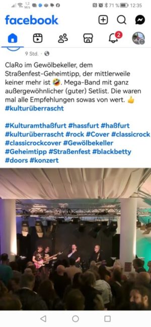 Das war eine tolle Rocknacht mit CLARO am 3. Oktober 2025 auf dem Haßfurter Straßenfest im Gewölbekeller. Mit vielen neuen Fans des Classic Rock hatten wir riesigen Spaß und ein geiles Konzert. Danke an alle, die dabei sein konnten!!!